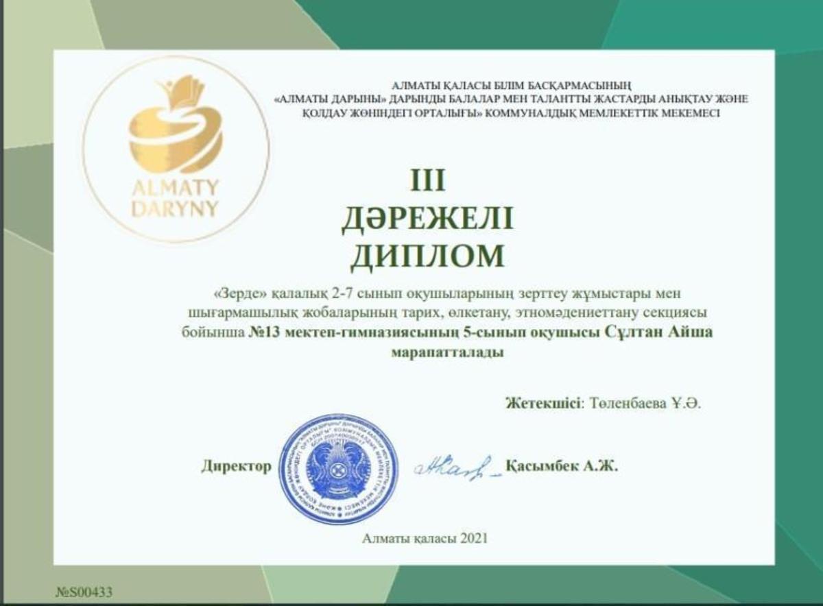 20 қаңтар 2021 0 1 2 3 4 5 "Зерде" қалалық ғылыми жобада Этномәдениеттану секциясы бойынша 3-дәрежелі диплом 5 сынып оқушысы Сұлтан Айша Осы беттің QR-коды:QR-код этой страницы: