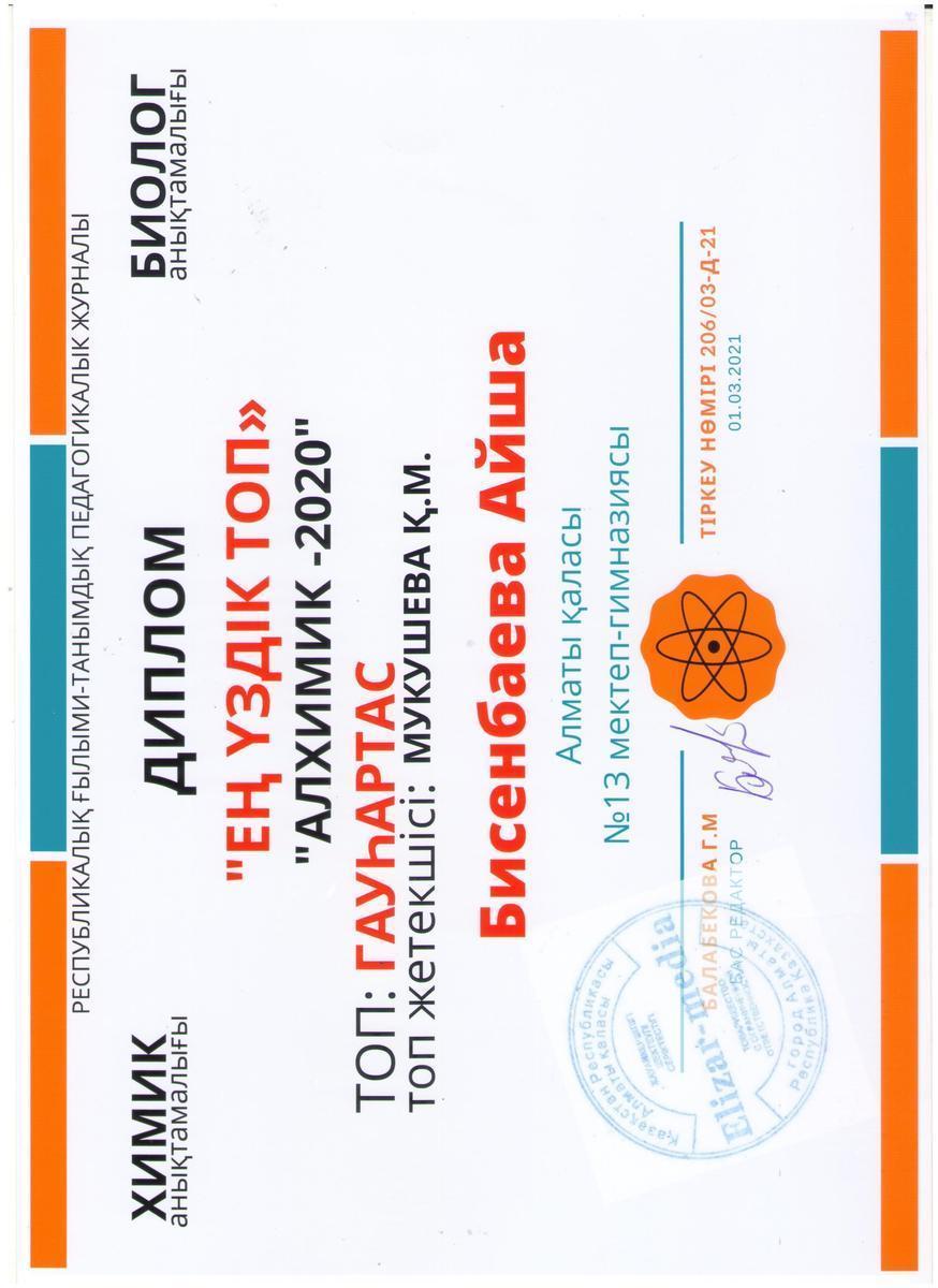 05 сәуір 2021 0 1 2 3 4 5 Ең-үздік топ "Ал-Химик 2020" Бисенбаева Айша Осы беттің QR-коды:QR-код этой страницы:
