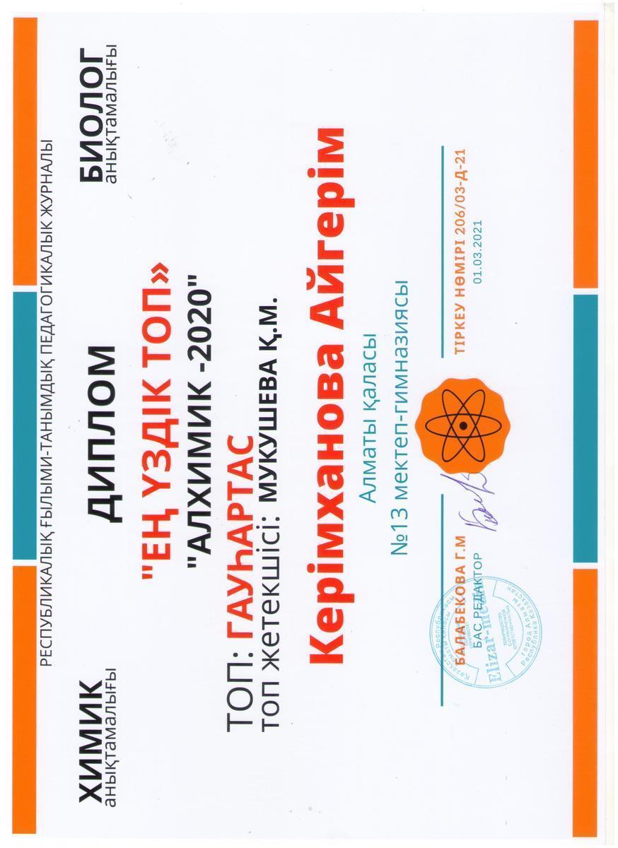 05 сәуір 2021 0 1 2 3 4 5 Ең-үздік топ "Ал-Химик 2020" Керімханова Айгерім Осы беттің QR-коды:QR-код этой страницы: