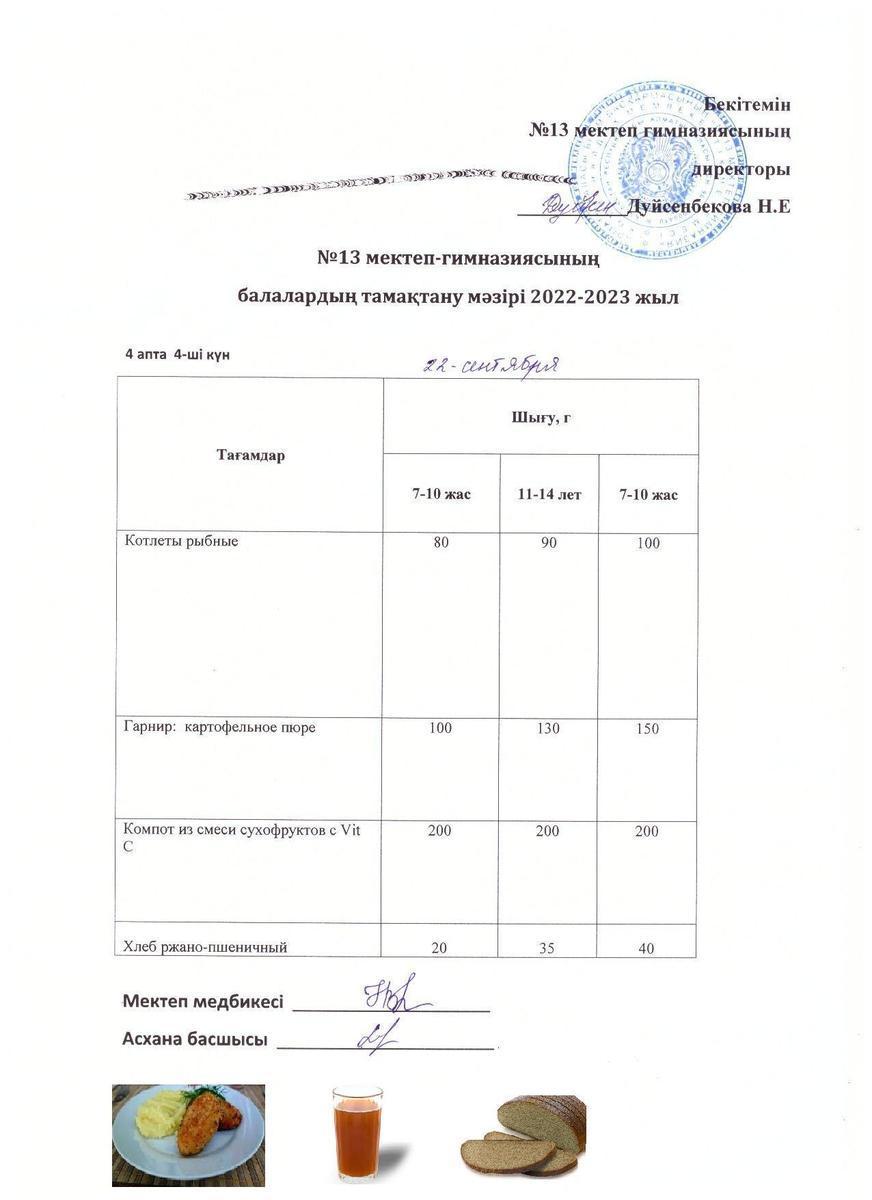 22 қыркүйек 2022 0 1 2 3 4 5 Күнделікті ас мәзірі 4 апта 4 күн Осы беттің QR-коды:QR-код этой страницы: