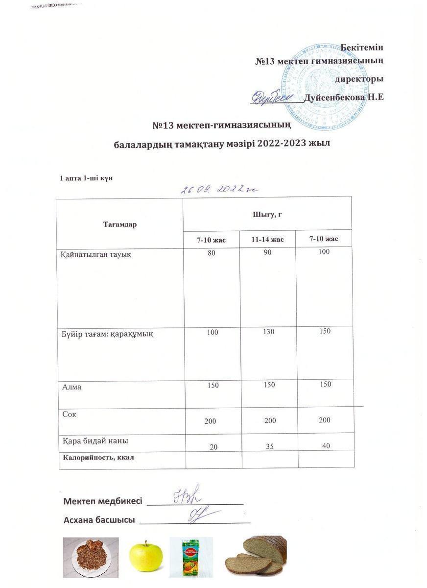 26 қыркүйек 2022 0 1 2 3 4 5 Күнделікті ас мәзірі 1 апта 1 күн 26.09.2022 Осы беттің QR-коды:QR-код этой страницы: