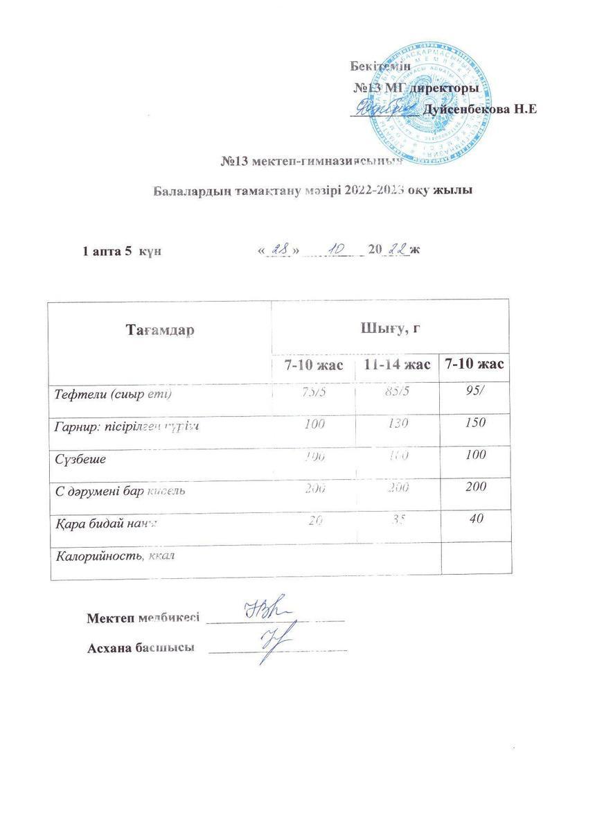 28 қазан 2022 0 1 2 3 4 5 Күнделікті ас мәзірі 1 апта 5 күн 28.10.2022 Осы беттің QR-коды:QR-код этой страницы:
