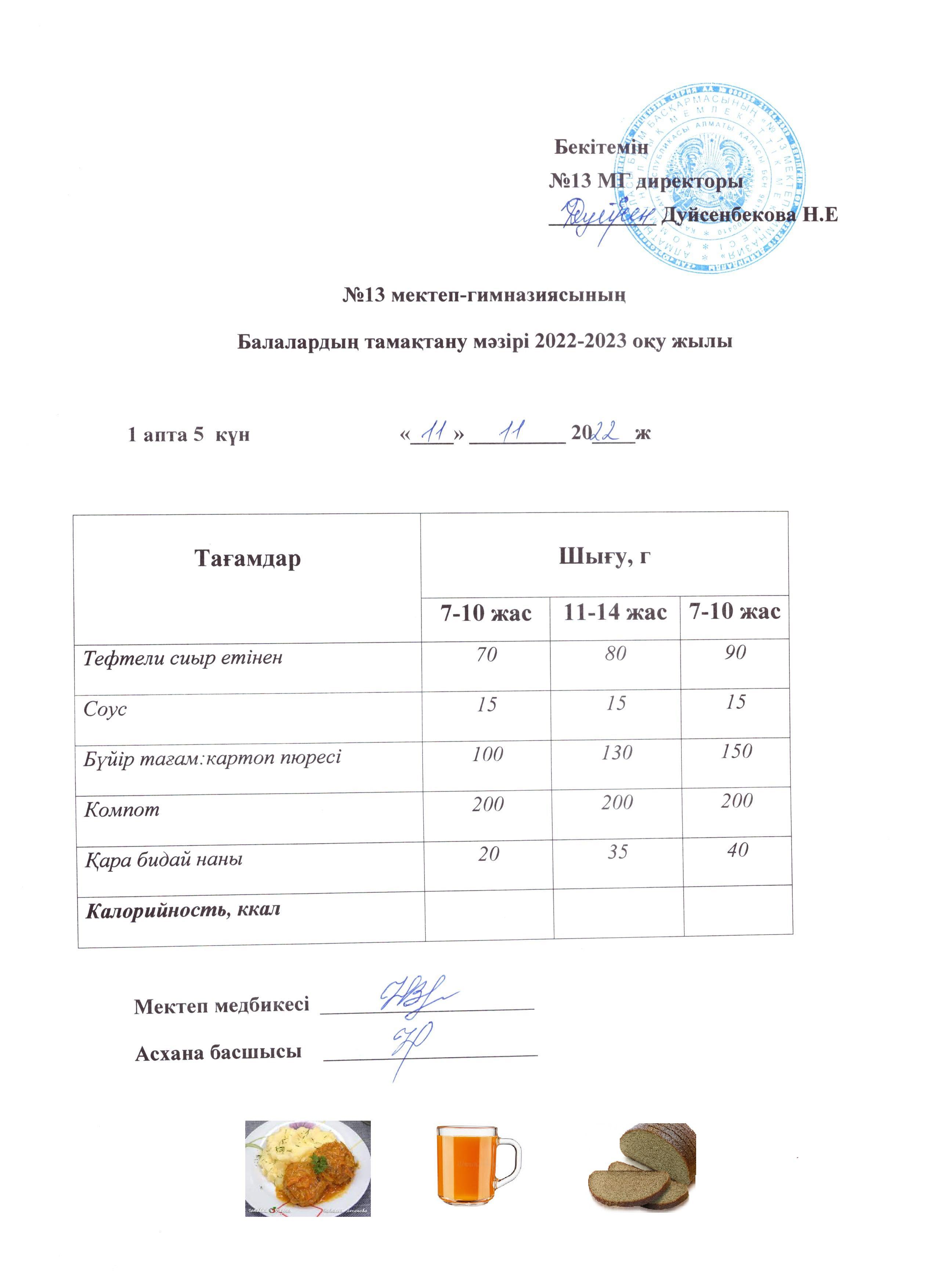 11 қараша 2022 0 1 2 3 4 5 Күнделікті ас мәзірі 1 апта 5 күн 11.11.2022 Осы беттің QR-коды:QR-код этой страницы: