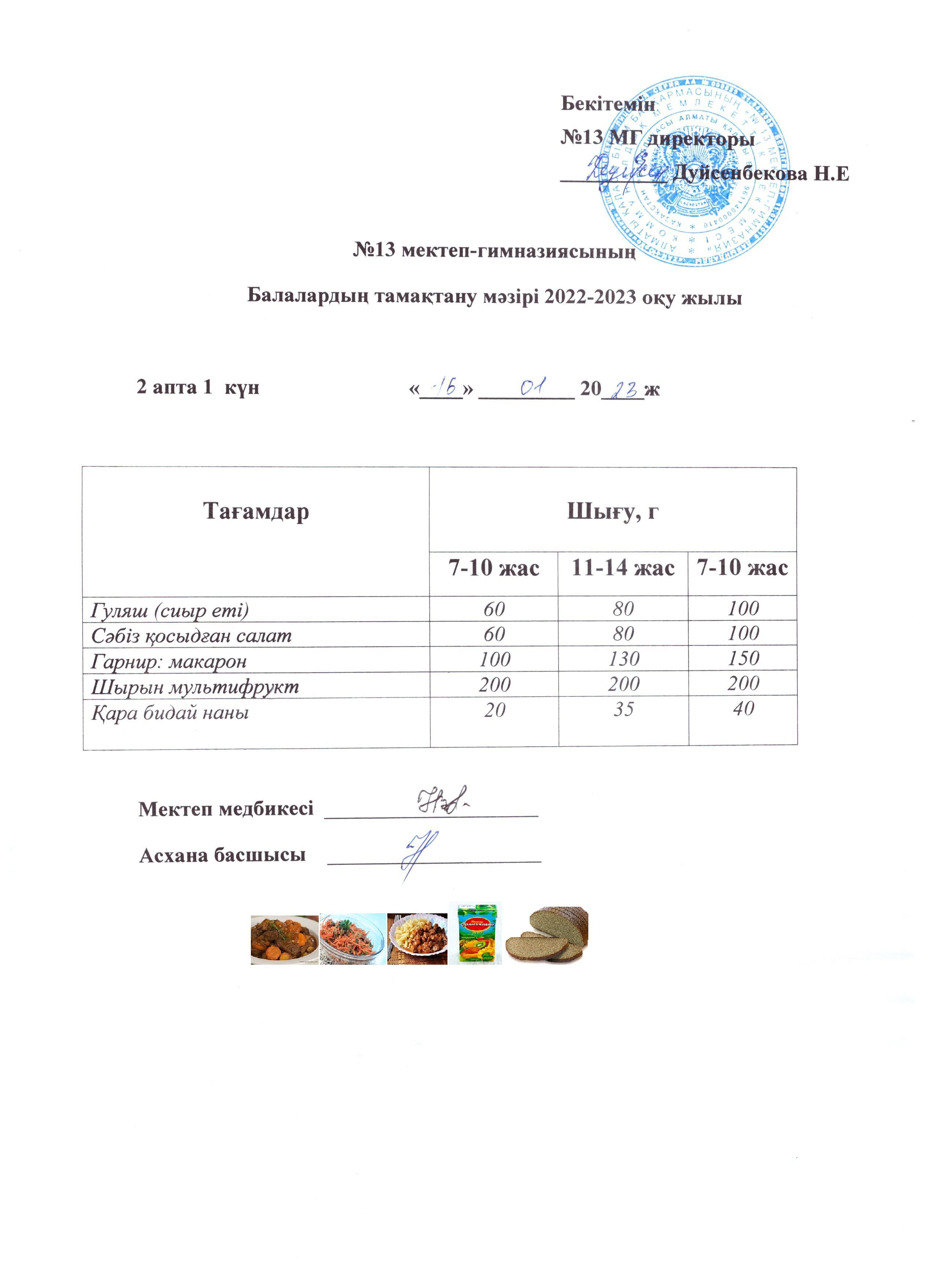 16 қаңтар 2023 0 1 2 3 4 5 Күнделікті ас мәзірі 2 апта 1 күн 16.01.2023 Осы беттің QR-коды:QR-код этой страницы: