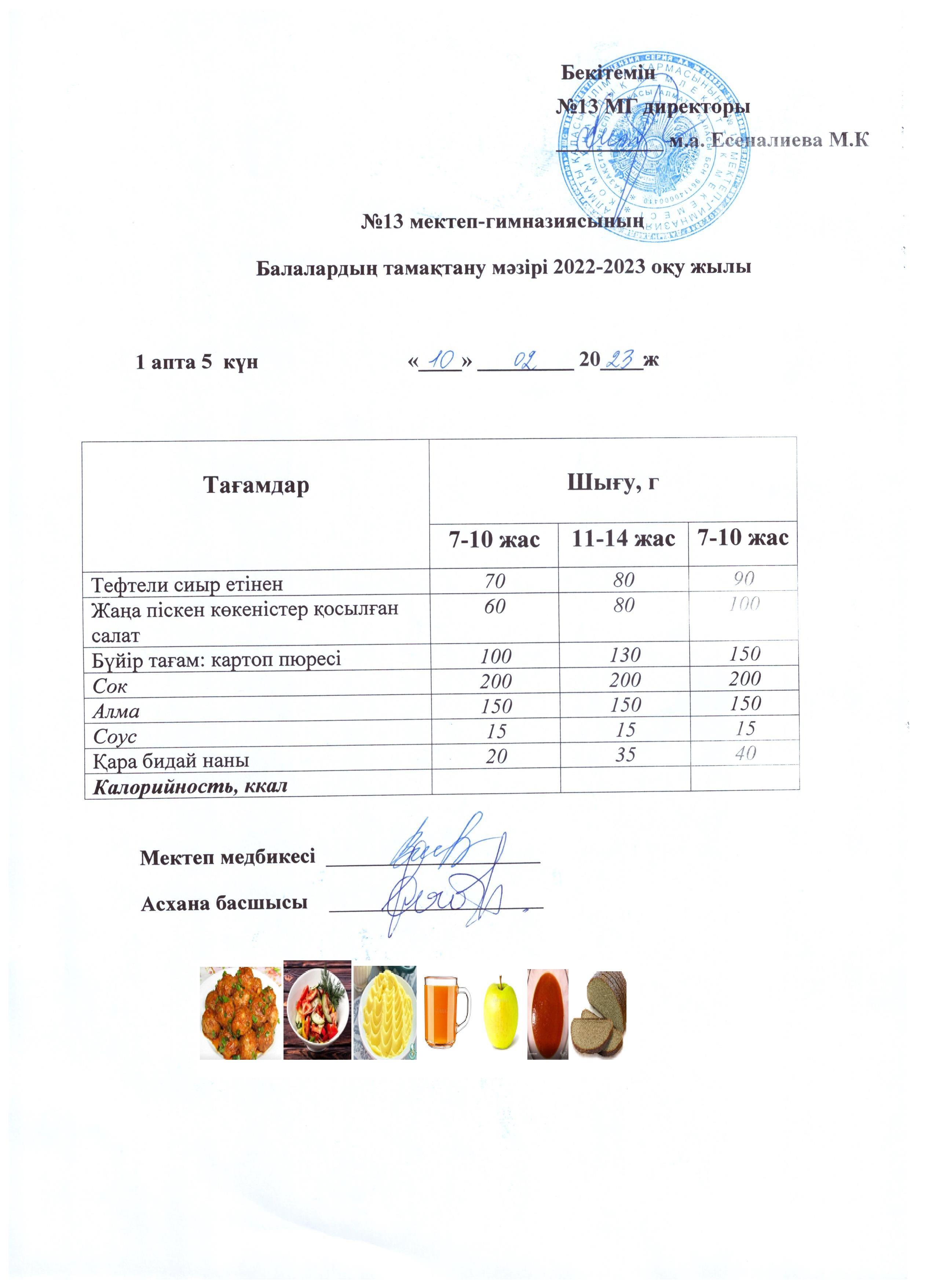 10 ақпан 2023 0 1 2 3 4 5 Күнделікті ас мәзірі 1 апта 5 күн 10.02.2023 Осы беттің QR-коды:QR-код этой страницы: