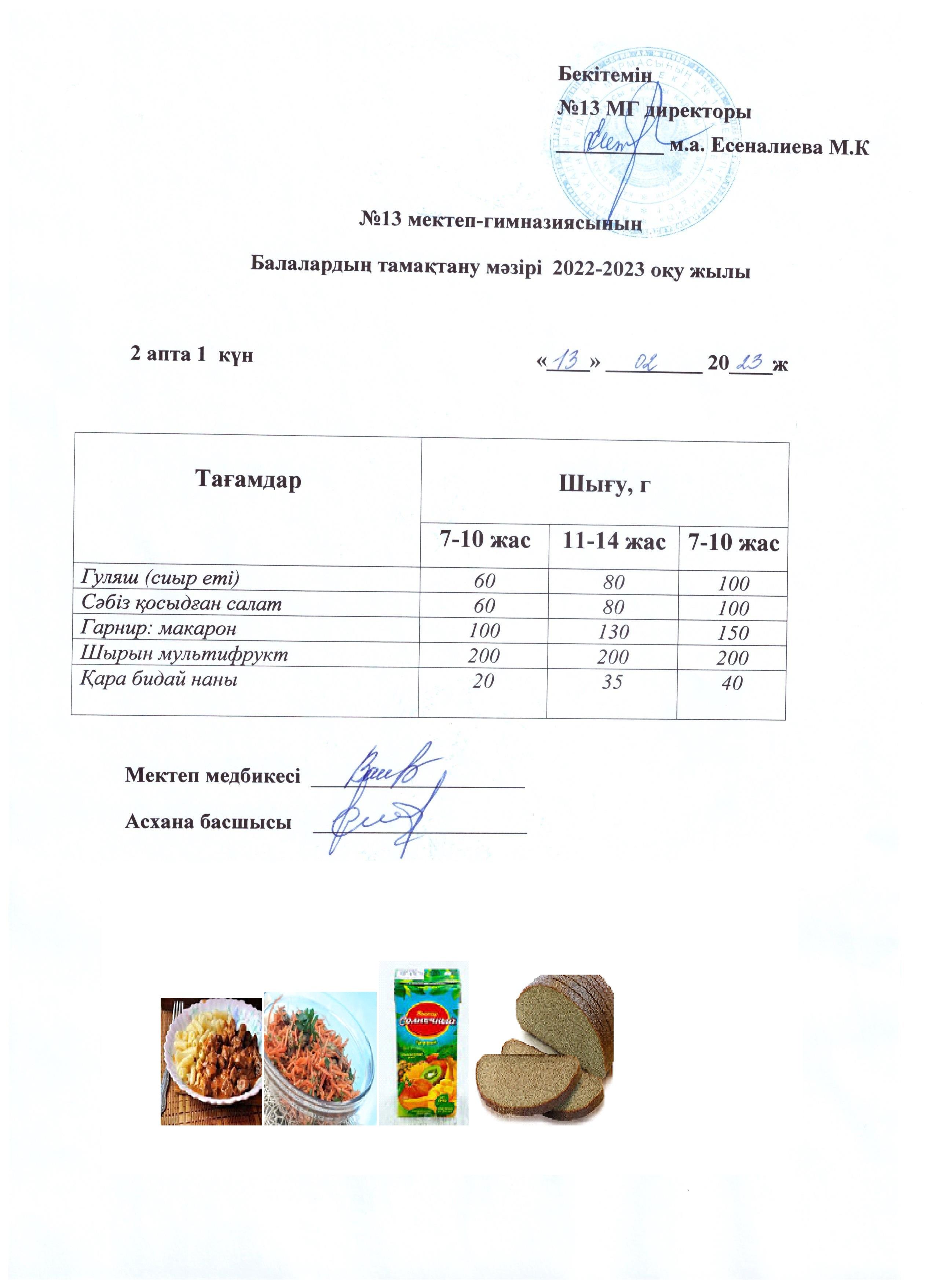 13 ақпан 2023 0 1 2 3 4 5 Күнделікті ас мәзірі 2 апта 1 күн 13.02.2023 Осы беттің QR-коды:QR-код этой страницы:
