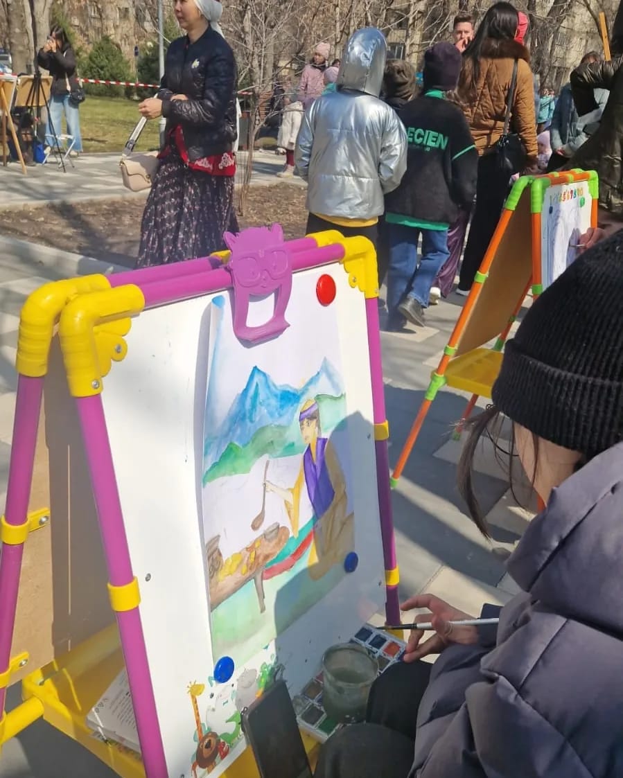 Алматы қаласы Әуезов ауданы √13 мектеп-гимназиясының оқушылары 21 наурыз күні ұйымдастырылған әкімдіктің алдындағы алаңда мерекелік концертке қатысып, ат салысты. Мерекелік концертте әртістер ұлттық және әлемдік музыкалық шығармаларды орындады.