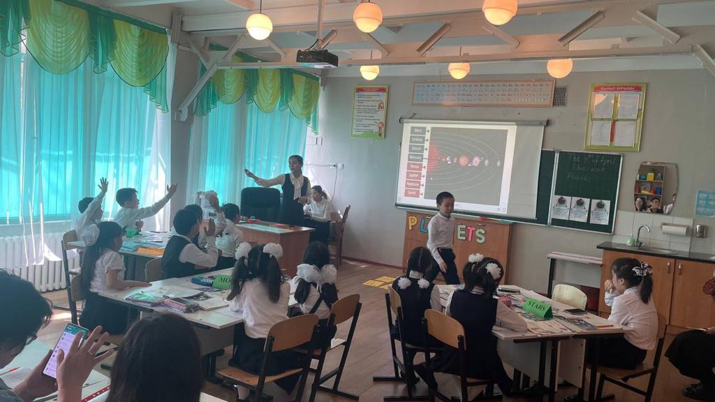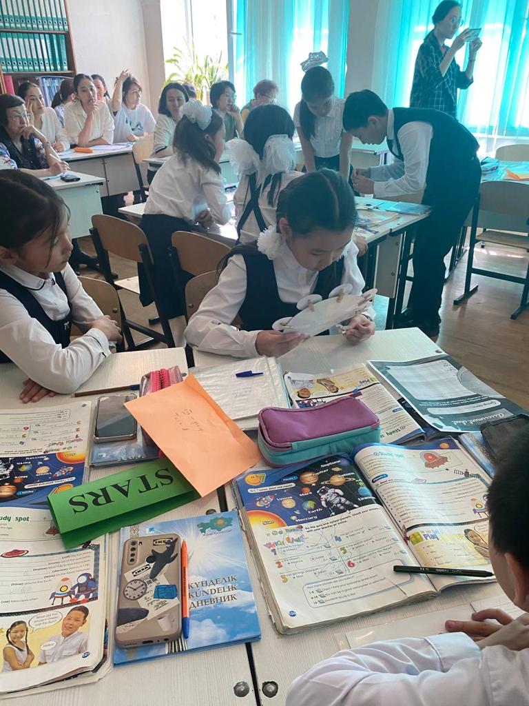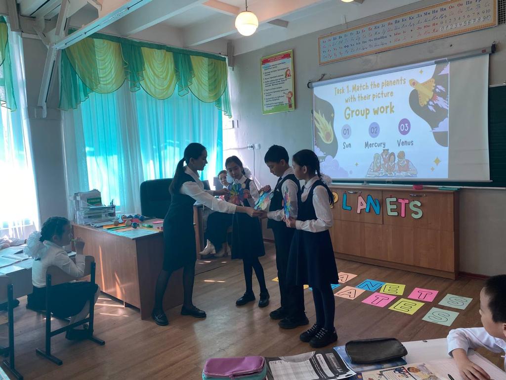 Алматы қаласы Әуезов ауданы √13 мектеп-гимназиясында "Самғай бер, Жас маман!" тақырыбында өтіп жатқан, жас мамандар онкүндігінде 4"А" сынып оқушыларымен ағылшын тілі пәні бойынша ашық сабақ өткізілді.