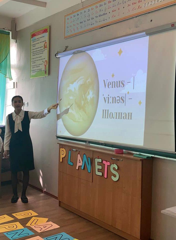 Сабақтың мақсаты: Планеталардың аудармасын білу және қысқаша мәліметтерді түсіну. Жаңа сөздермен сөйлем құрап үйрену.