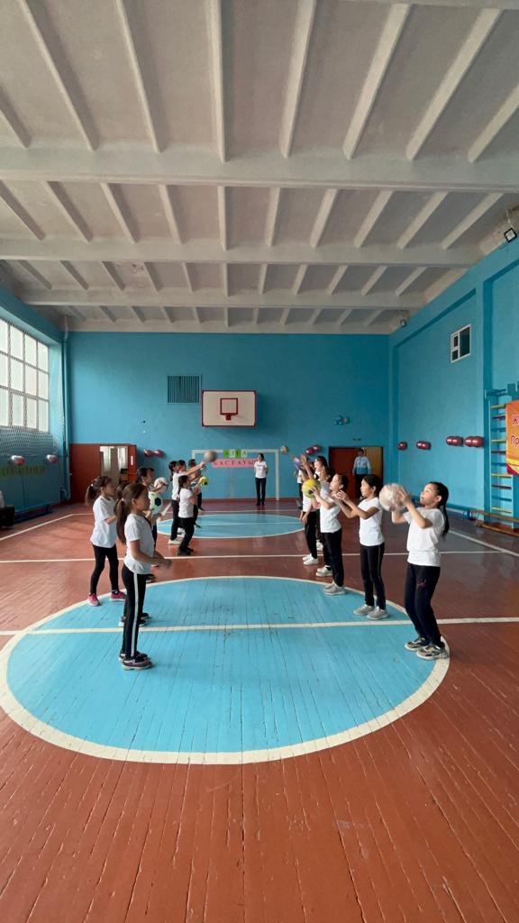 Мақсаты: Эстафеталық және қозғалмалы ойындарда дене дамуына әсер ететін жаттығуларды орындау, орындау маңыздылығын білу, доппен жасалатын жаттығуларды құрастыру және оларды ретімен орындау.