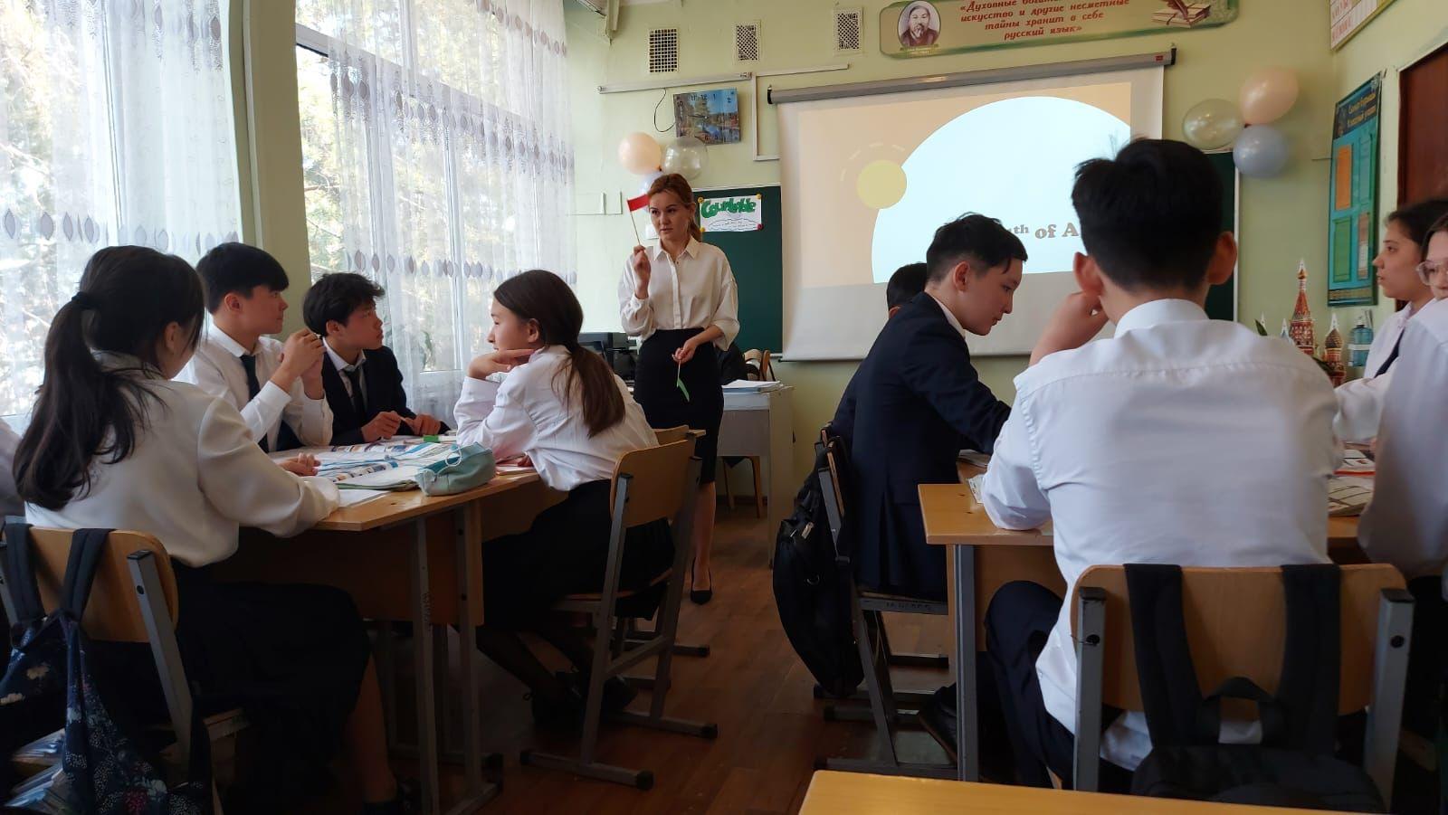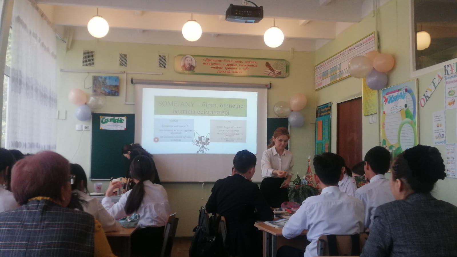 Алматы қаласы Әуезов ауданы √13 мектеп-гимназиясында "Самғай бер, Жас маман!" тақырыбында өтіп жатқан, жас мамандар онкүндігінде 8"А" сыныбында ағылшын тілі пәнінен ашық сабақ өткізілді.