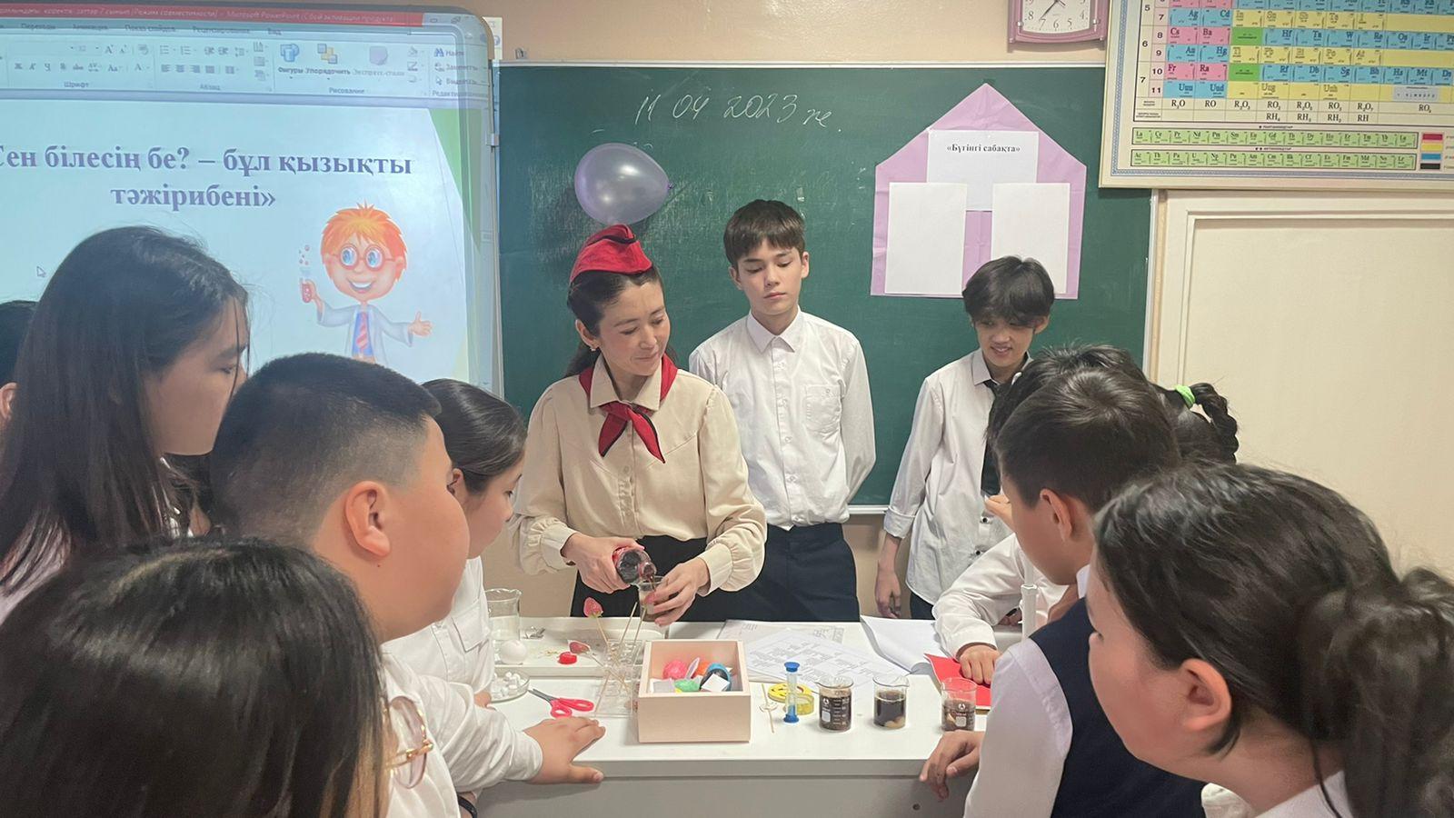 Алматы қаласы Әуезов ауданы √13 мектеп-гимназиясында "Самғай бер, Жас маман!" тақырыбында өтіп жатқан, жас мамандар онкүндігінде 7"А" сыныбында химия пәні бойынша ашық сабақ өткізілді.