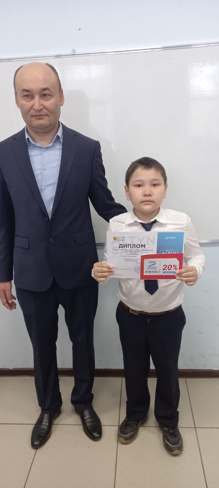 Сондай-ақ 4"Б"сынып оқушысы Аслам Дияр Даниярұлы "Алтын сақа" олимпиадасынан аудандық кезеңінен 2 орынды иеленді.