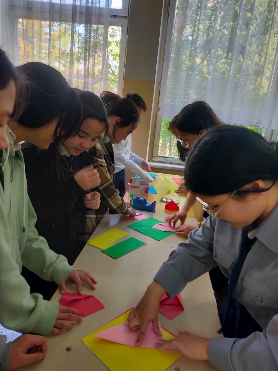 Алматы қаласы Әуезов ауданы √13 мектеп-гимназиясында "Эстетикалық пәндер" бірлестігінің "Салауатты, сауатты, ұлтжанды әрі жан-жақты ұрпақ-жарқын болашақ негізі" атты онкүндігі аясында 5 сыныптар арасында өткен шеберлік сабағы.