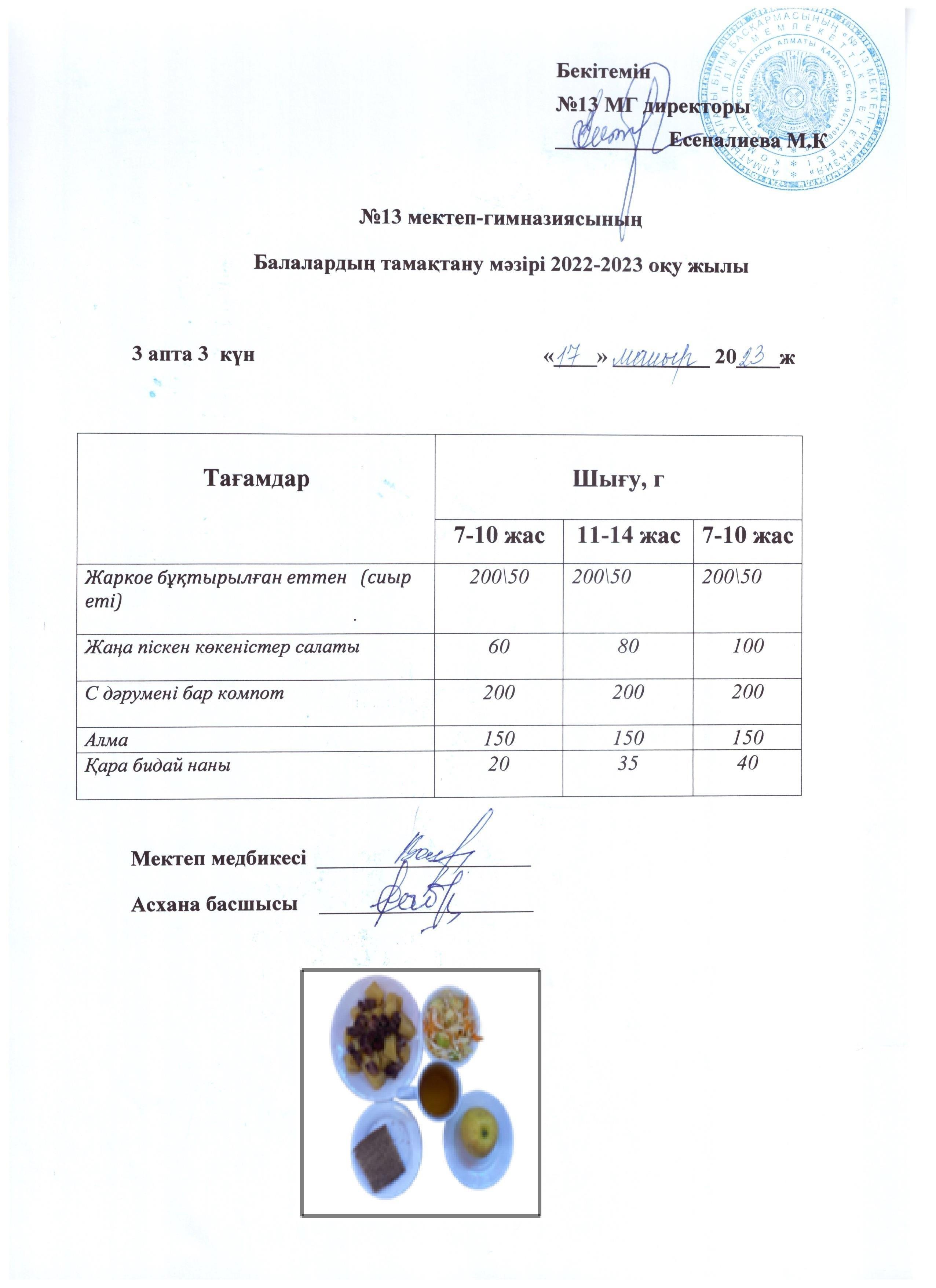17 мамыр 2023 0 1 2 3 4 5 Күнделікті ас мәзірі 3 апта 3 күн 17.05.2023 Осы беттің QR-коды:QR-код этой страницы: