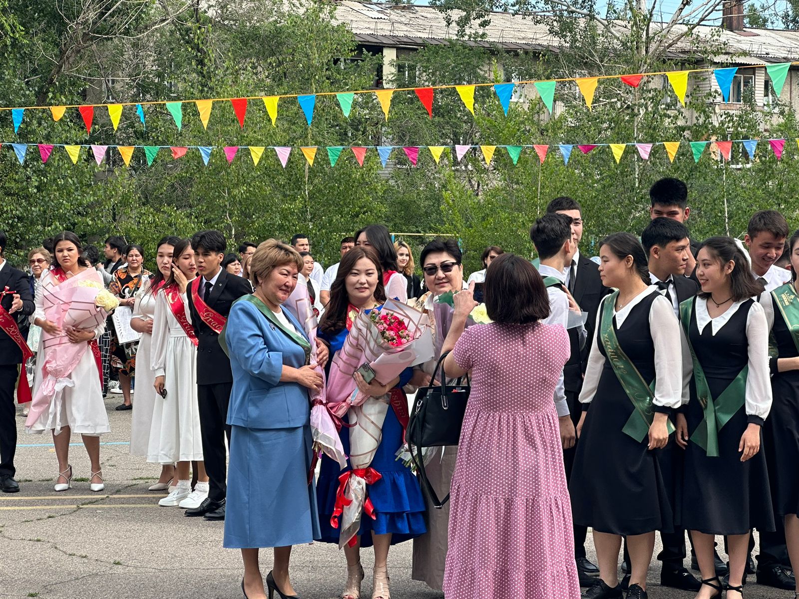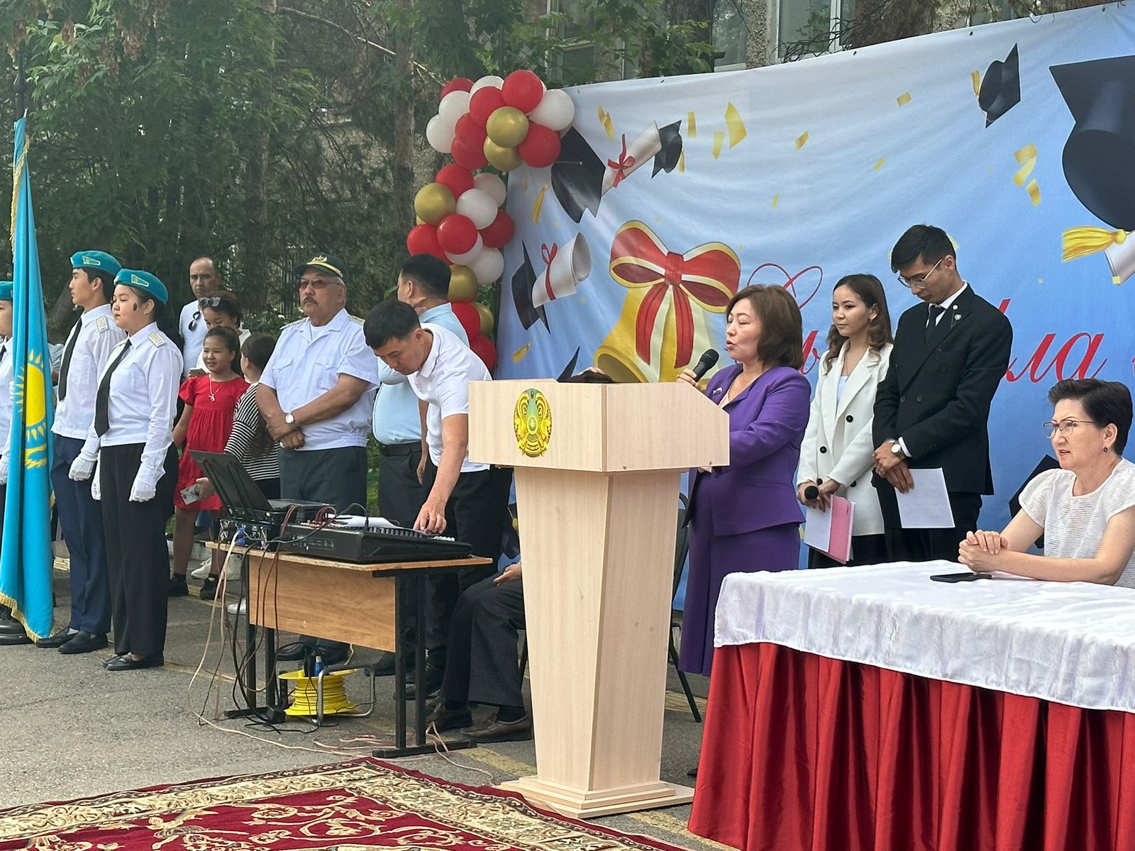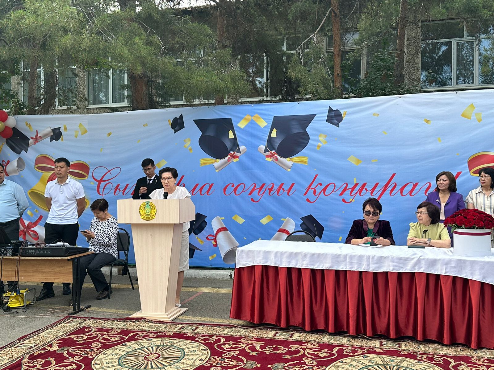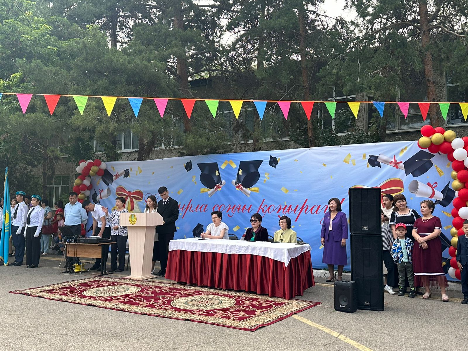 Сонымен қатар, салтанатты жиынымыздың қадірлі қонағы болған, Әуезов ауданы әкімдік аппаратының бас маманы Сансызбаева Айгуль Айдархановна. Айгуль Айдархановна оқушыларды оқу жылының аяқталуымен құттықтап, 11 сынып оқушыларына жылы лебізін білдірді.
