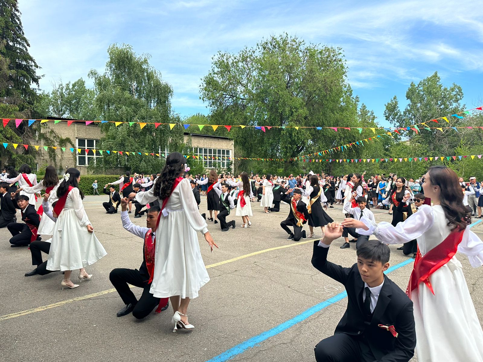 Алматы қаласы Әуезов ауданы №13 мектеп-гимназиясында директордың тәрбие ісі жөніндегі орынбасарлары Г.К.Сартова мен Б.А.Алимжанованың ұйымдастыруымен соңғы қоңырау салтанаты өтті. Соңғы қоңырауда мектеп директоры М.К.Есеналиева оқушыларды оқу жылының аяқталуымен құттықтап, 11 сынып түлектеріне сәт сапар тіледі.