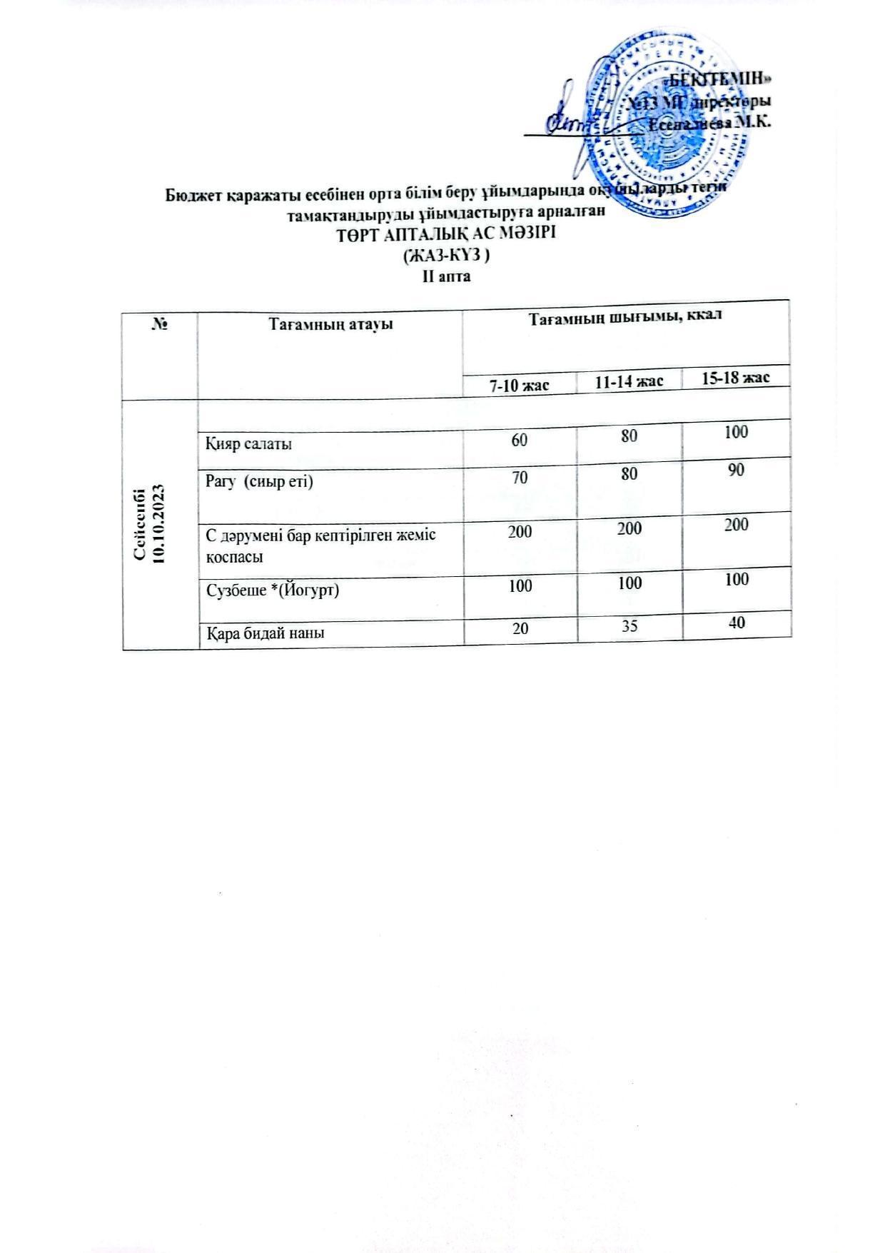 Меню 10.10.2023 » КГУ «Школа-гимназия №13» УО города Алматы