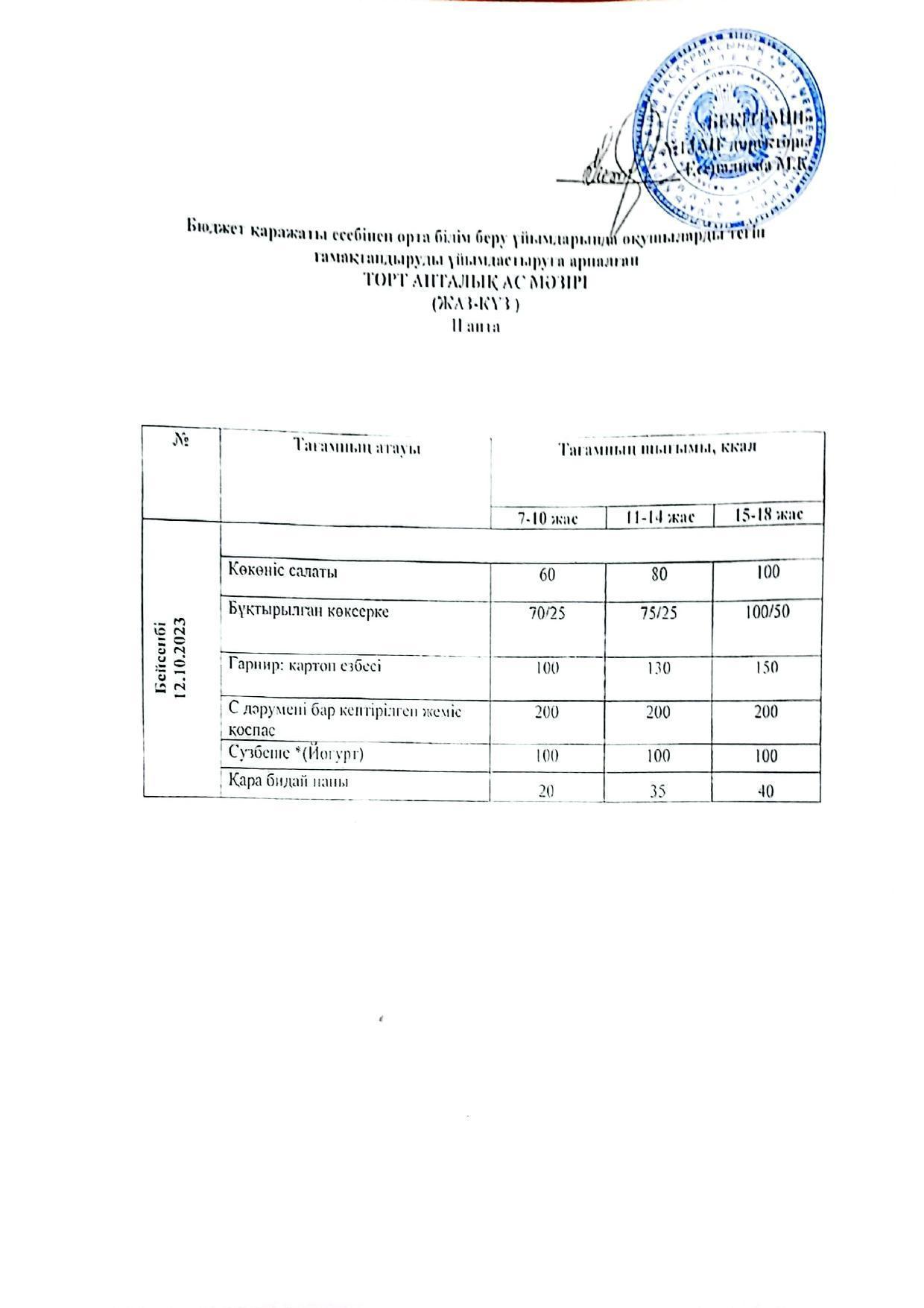 Меню 12.10.2023 » КГУ «Школа-гимназия №13» УО города Алматы