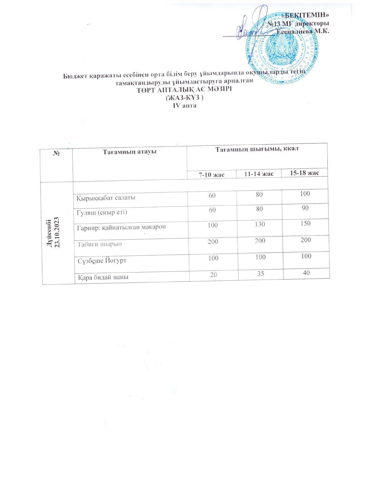 Меню 23.07.2023 » КГУ «Школа-гимназия №13» УО города Алматы