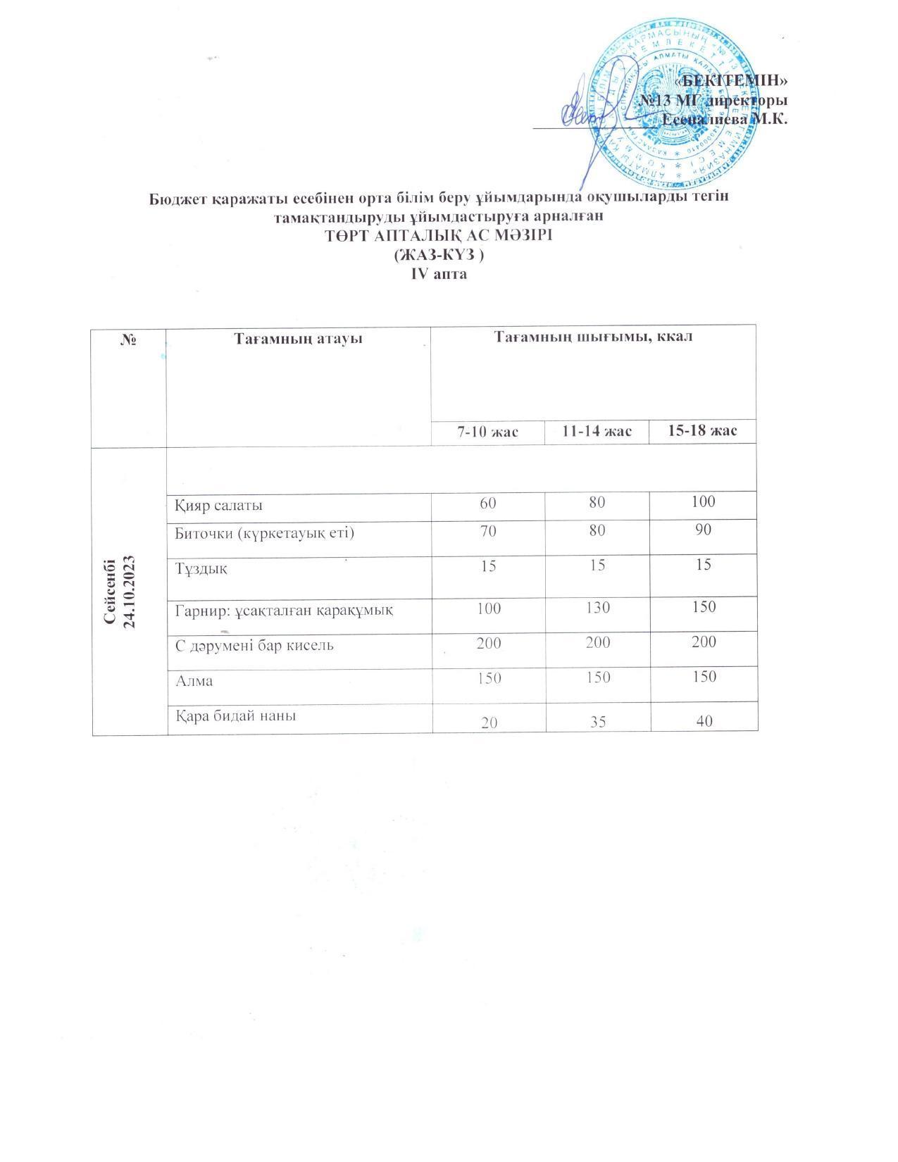 Меню 24.10.2023 » КГУ «Школа-гимназия №13» УО города Алматы
