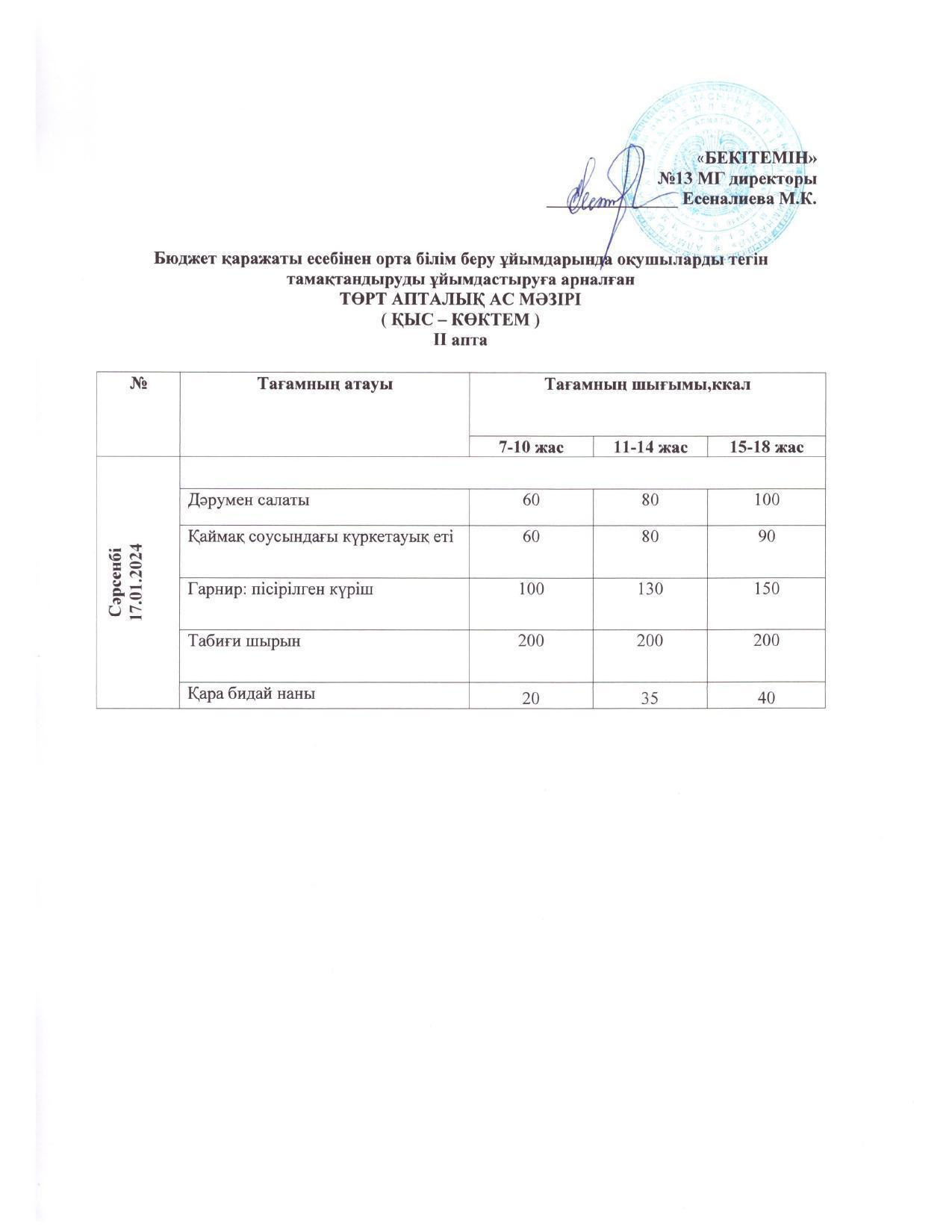 Меню 17.01.2024 » КГУ «Школа-гимназия №13» УО города Алматы