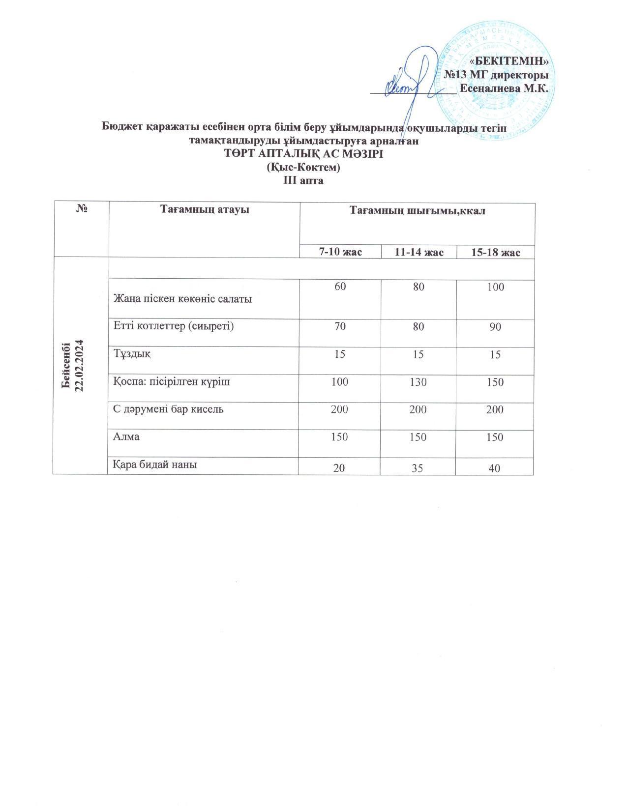 Меню 22.02.2024 » КГУ «Школа-гимназия №13» УО города Алматы