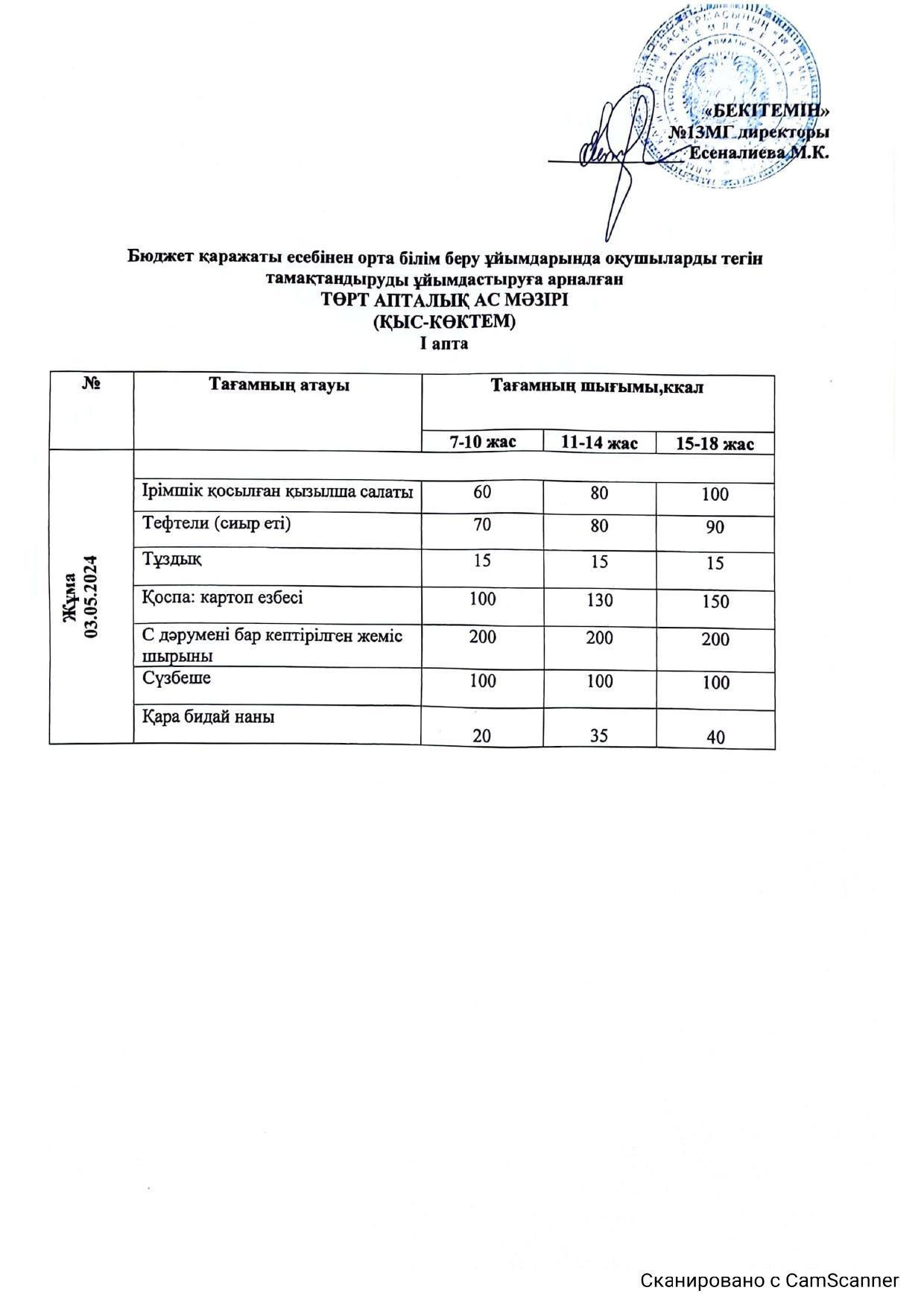 Меню 03.05.2024 » КГУ «Школа-гимназия №13» УО города Алматы