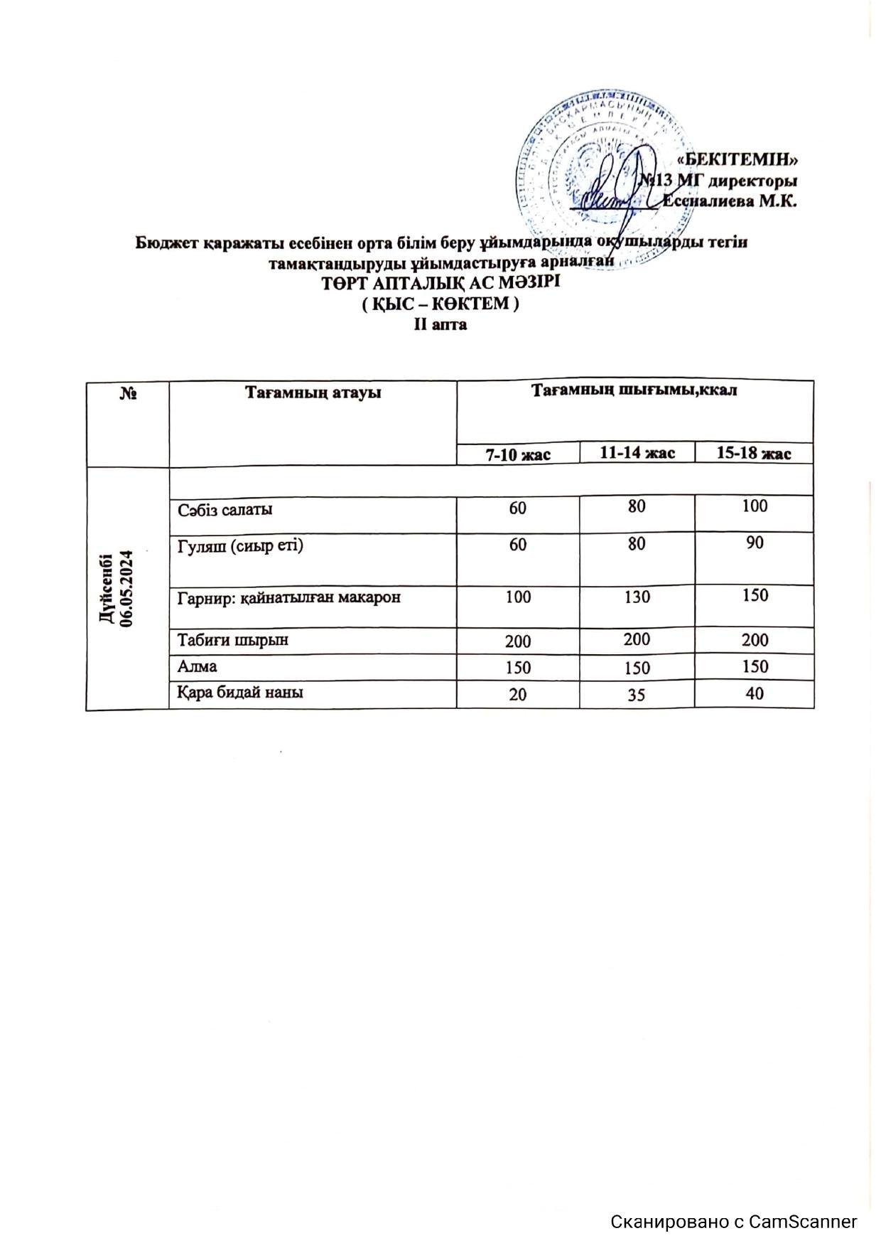 Меню 06.05.2024 » КГУ «Школа-гимназия №13» УО города Алматы