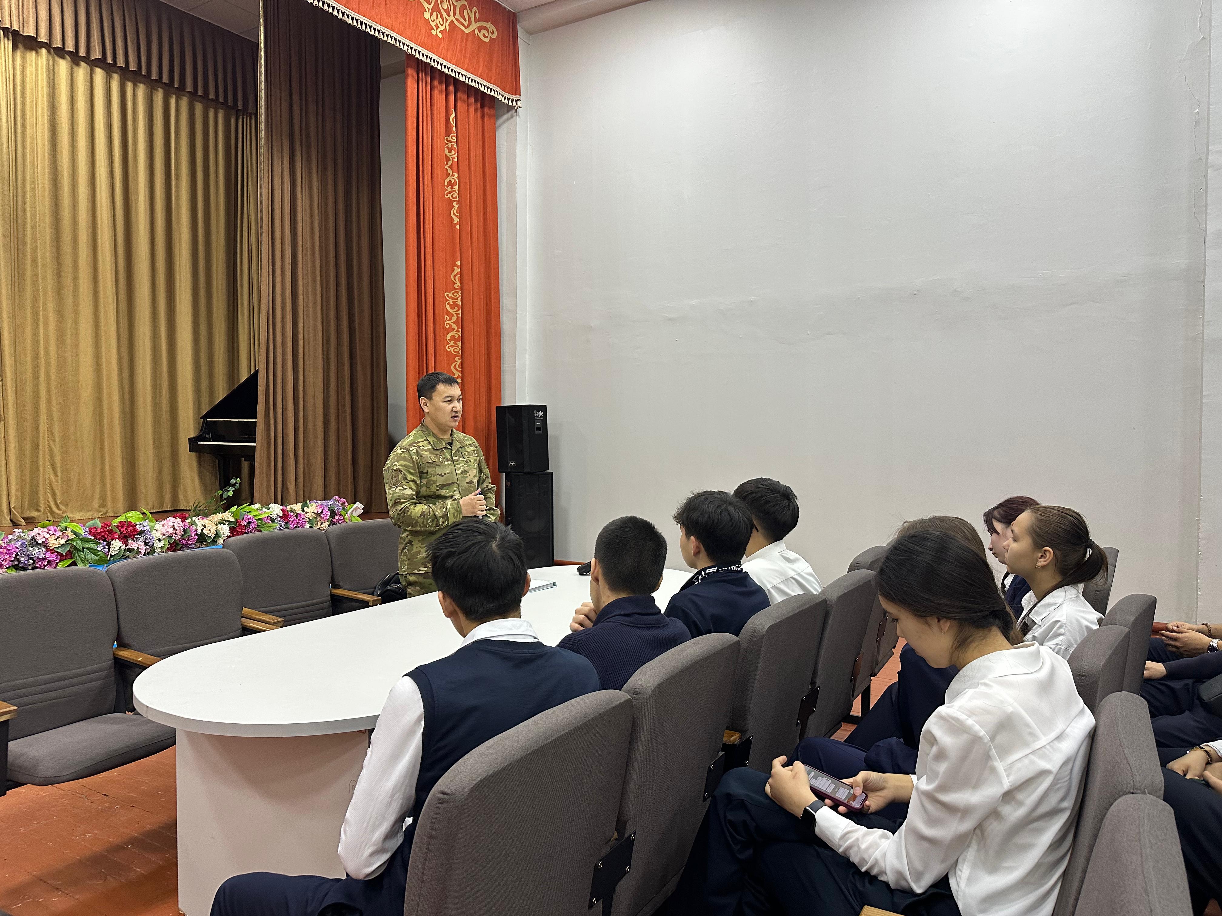 №13 мектеп-гимназиясында Әуезов ауданы төтенше жағдайлар басқармасының өкілі Дәуренұлы Рауан қауіпсіздік және төтенше жағдайлардың алдын алу бойынша түсіндірме жұмыстарын жүргізді.