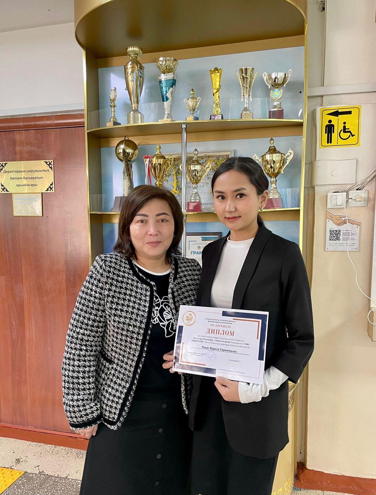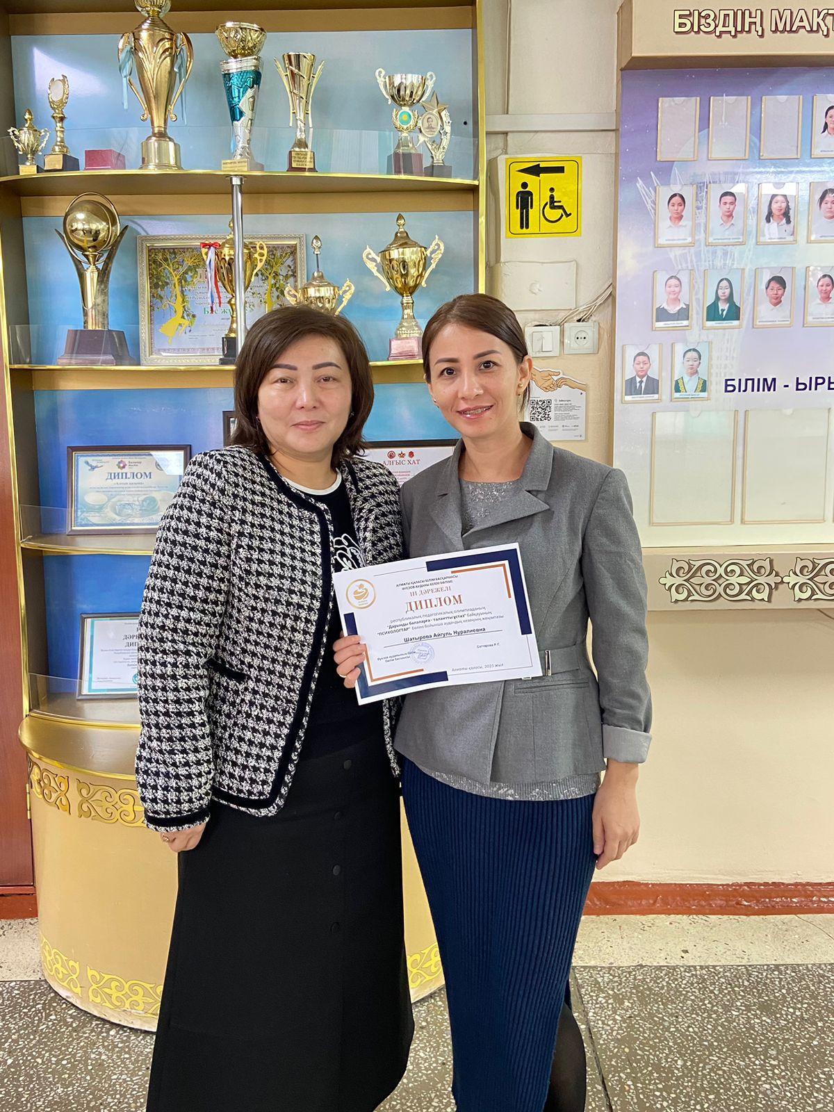 ы қаласы Білім басқармасы, Әуезов ауданы білім бөлімі ұйымдастырған республикалық педагогикалық олимпиаданың «Дарынды балаларға – талантты ұстаз» байқауының «Жас педагогтер» бөлімі бойынша аудандық кезеңінде ағылшын тілі пәні мұғалімі Рахат Фариза Сержанқызы, ал «Психологтар» бөлімі бойынша Шатырова Айгүл Нуралиевна жүлделі III дәрежелі дипломмен марапатталды.