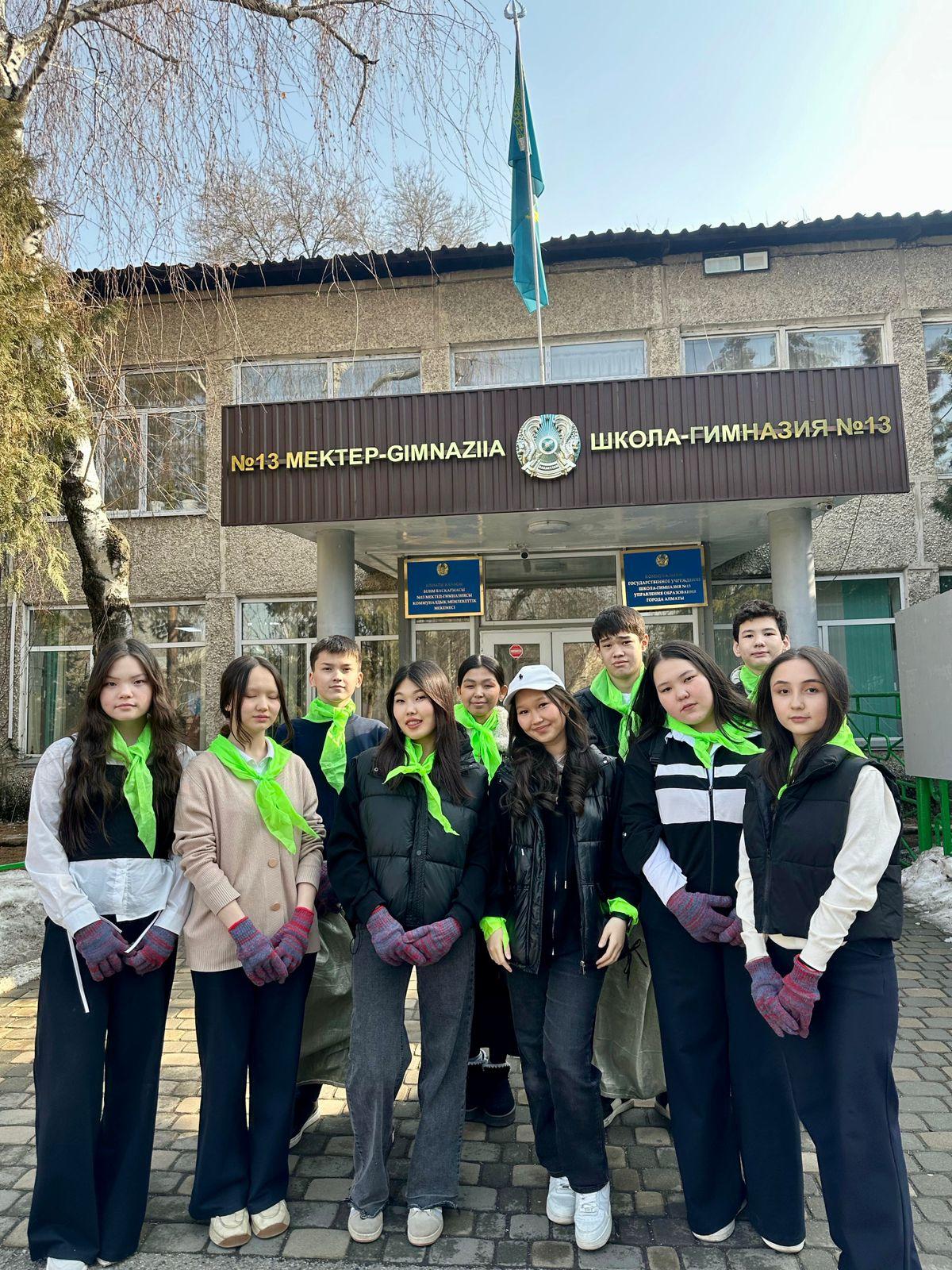 Осындай игі бастамалардың бірі – ”Таза Қазақстан” экологиялық челленджі. Бұл челленджді Әуезов ауданы (@auezovpoo_ ) №13 мектеп-гимназиясы жалғастырды. Акция қоршаған ортаны қорғауға, табиғатты аялауға деген жауапкершілікті арттыруға бағытталды. Әр азамат табиғатты қорғауға өз үлесін қосу арқылы болашақ ұрпаққа таза әрі жайлы орта қалдыруға ықпал етті.