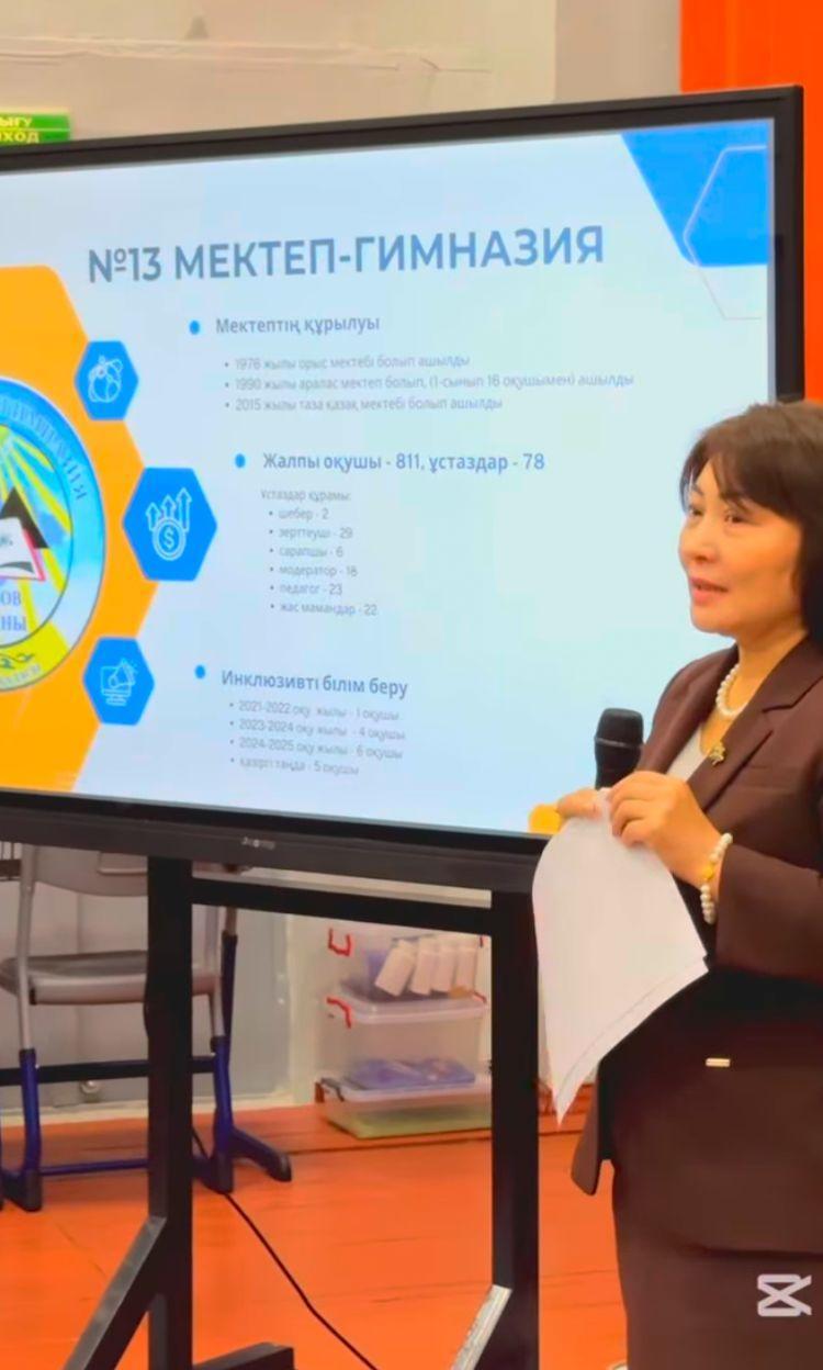 2025 жылғы сәуір айында №13 мектеп-гимназиясы базасында инклюзивті білім беру мәселелеріне арналған аудандық директорлар семинары өтті. Семинар жұмысына Әуезов ауданының мектеп директорлары, Әуезов аудандық білім бөлімінің басшысы Саттарова Г.Р., оқу әдіскері Ногайсарина Г.Ж., тәрбие әдіскері Отепбекова Б.М. қатысты.