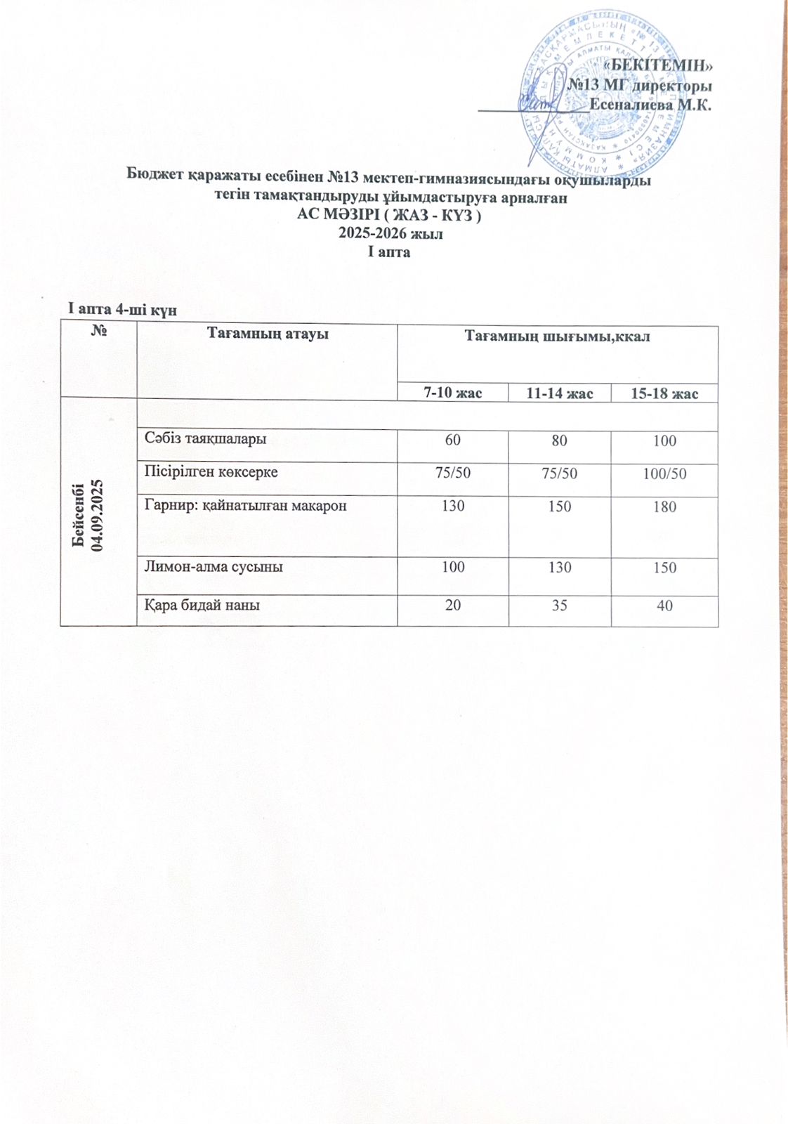 Мәзір 04.09.2025ж » КГУ «Школа-гимназия №13» УО города Алматы