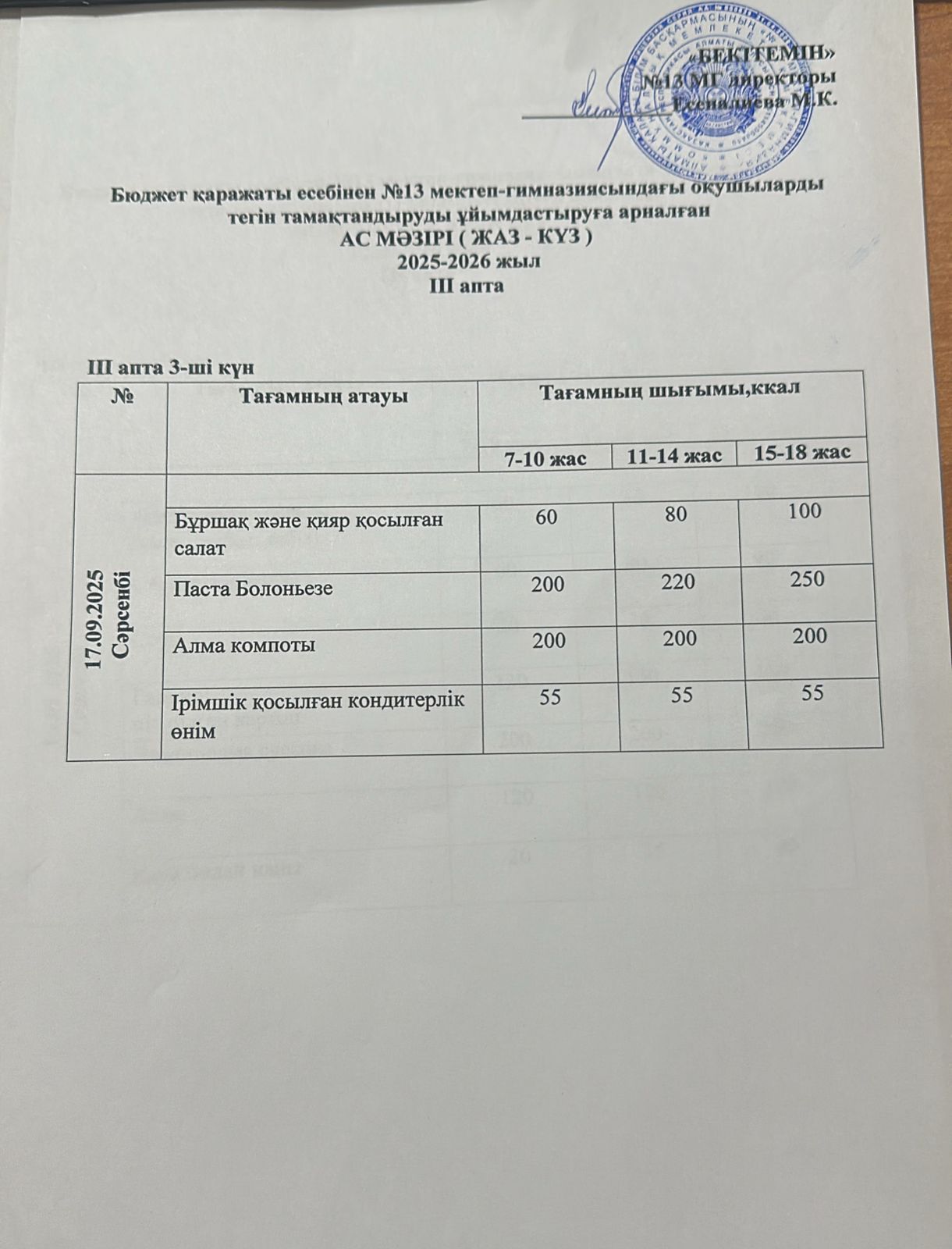 Мәзір 17.09.2025 » КГУ «Школа-гимназия №13» УО города Алматы
