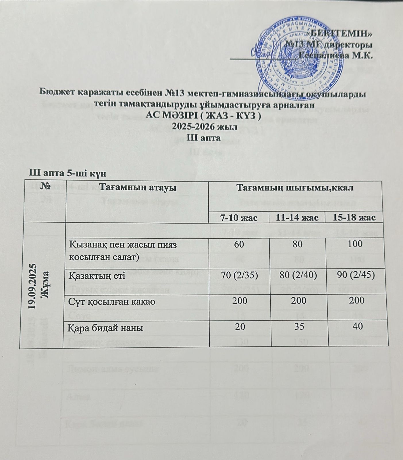 Мәзір 19.09.2025 » КГУ «Школа-гимназия №13» УО города Алматы